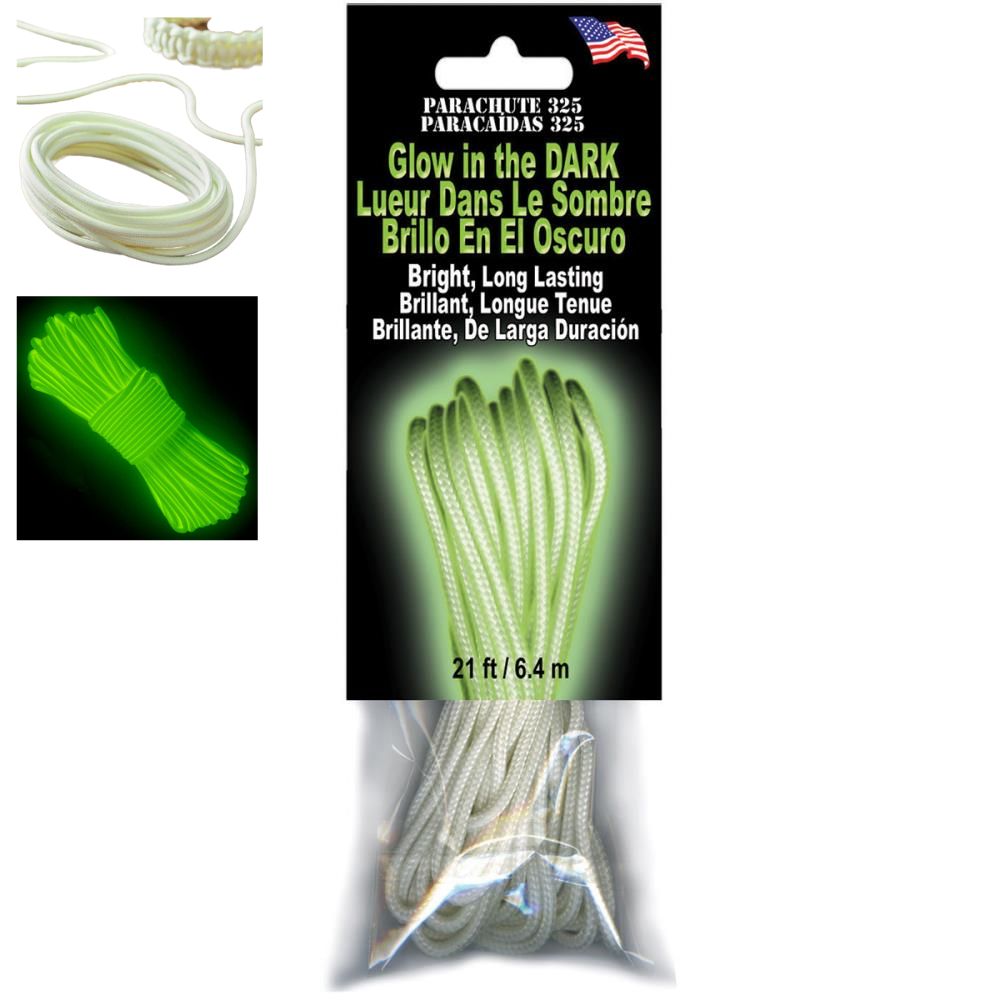 - 3 mm x 21 pies de cuerda de paracaídas que brilla en la oscuridad.