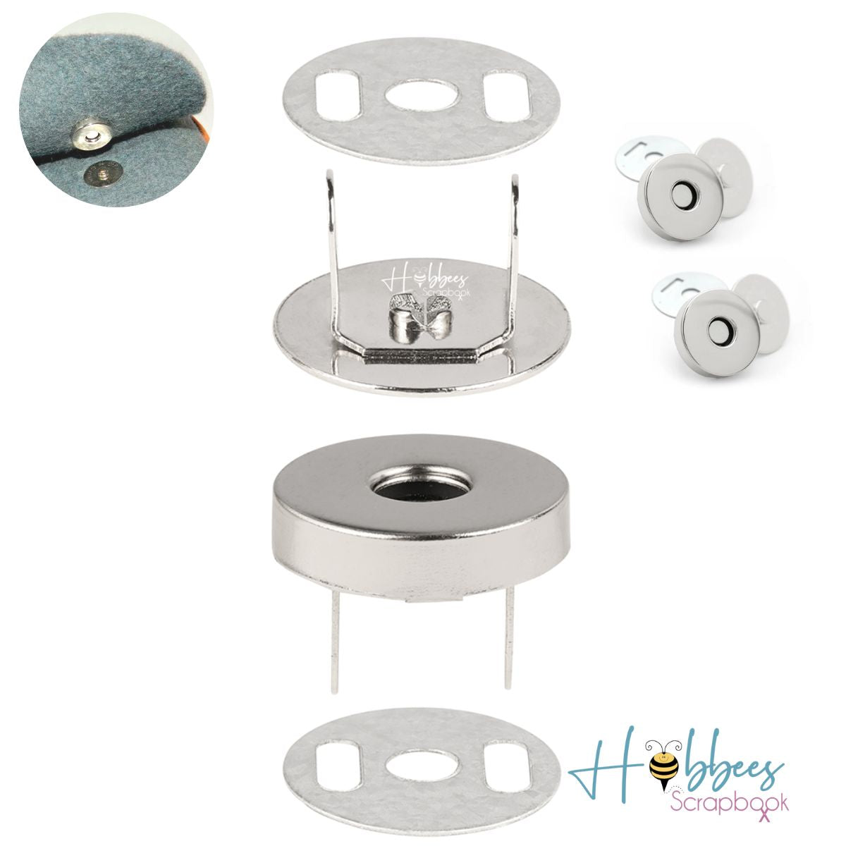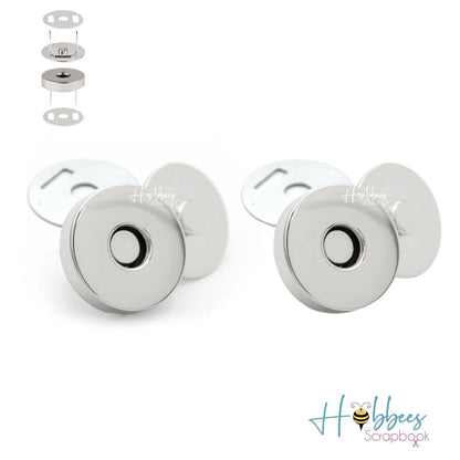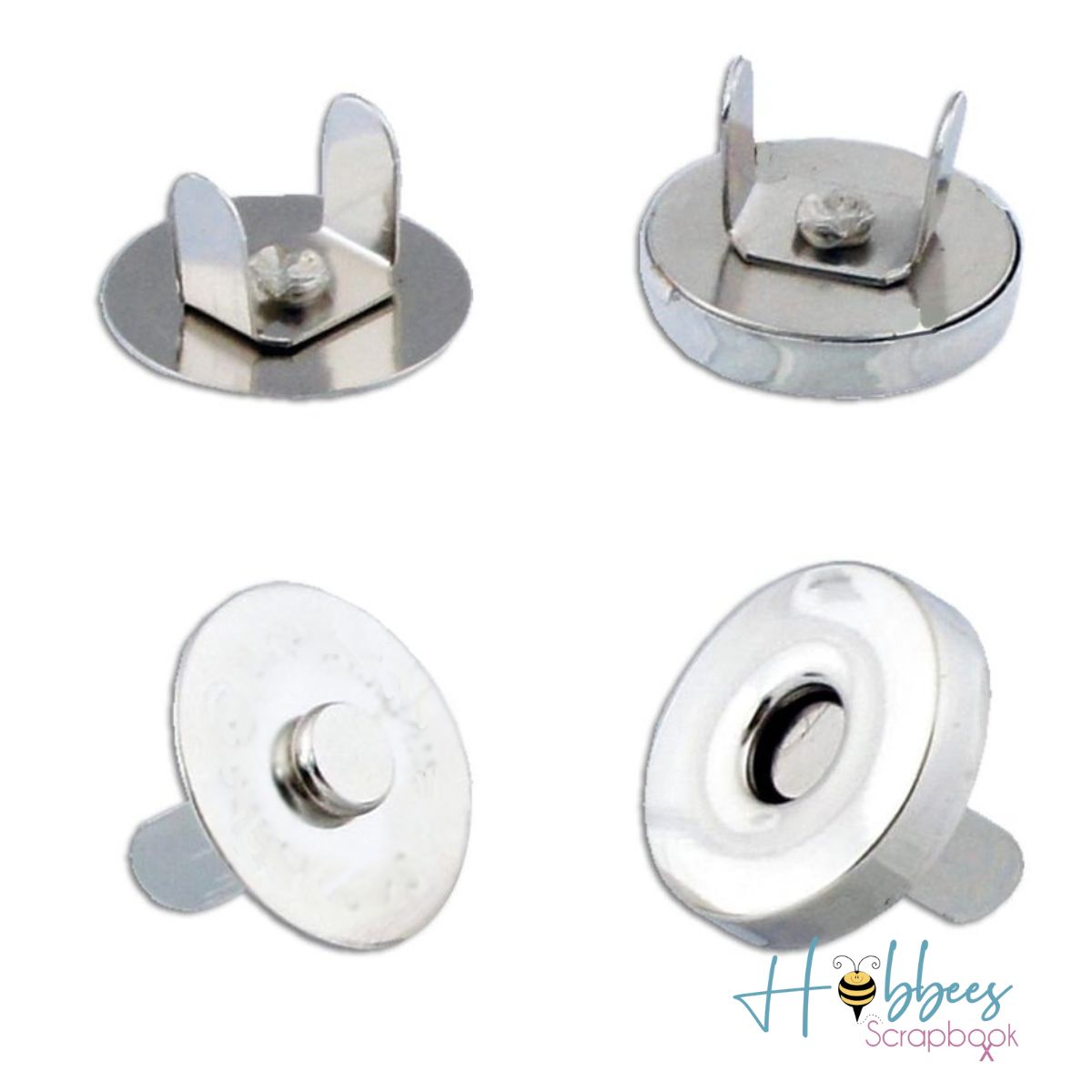 Broche o botón magnético de 18 mm de color plata o níquel. Ideal para cerrar: bolsos, mochilas, carteras, cangureras, portafolios, proyectos, etc.