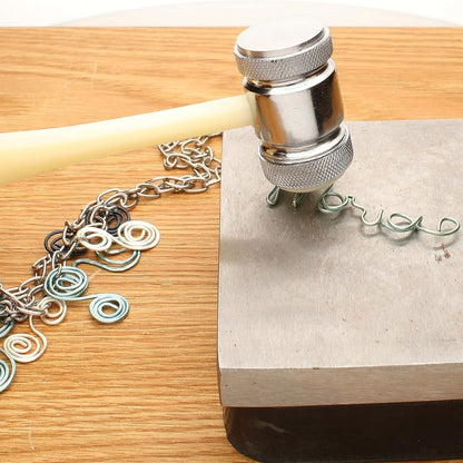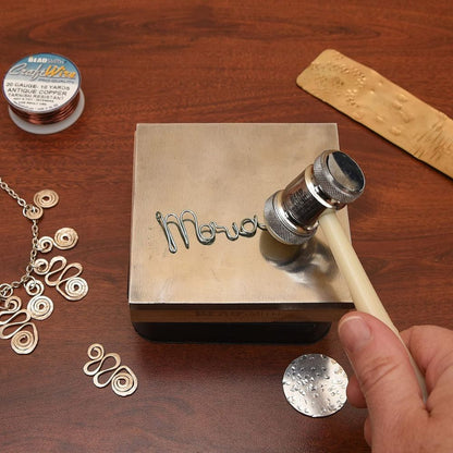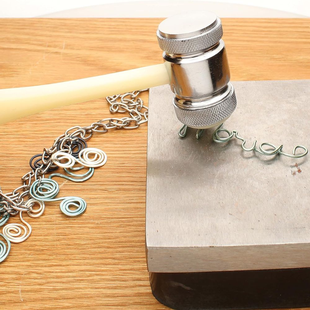 Este martillo es perfecto para trabajar joyería y bisutería. El martillo para trabajar metal cuenta con tres cabezales diferentes que te permiten trabajar en múltiples proyectos mientras usas la misma herramienta. La cara de acero convexa está especialmente diseñada para aplanar y extender metal, creando formas y diseños personalizados. La capa protectora del cabezal de nailon es ideal para endurecer alambre y hacer aretes, pulseras y colgantes envueltos en alambre. Agrega textura y diseños usando el cabezal plano, que se puede usar con precisión en cables de calibre 20 y más gruesos.