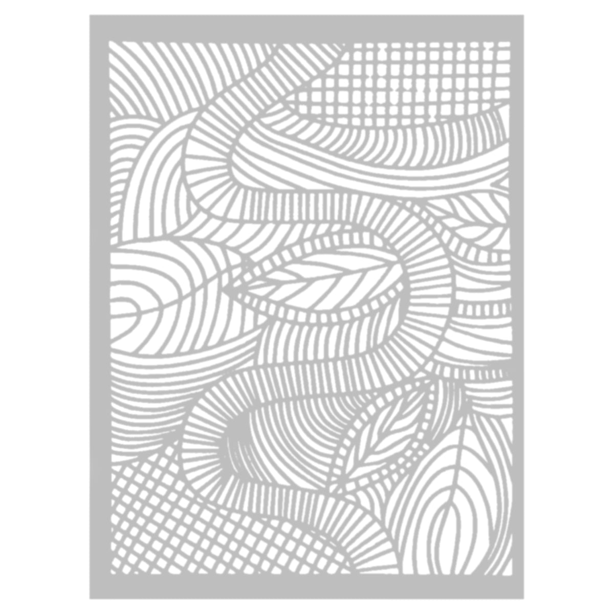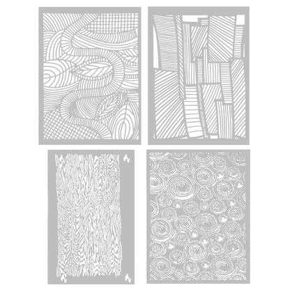 Plantillas diseñadas para utilizar con tintas, pintura, gesso, pasta de modelar, así como otros medios. Son flexibles, por lo que puedes colocarlas en casi cualquier superficie.
