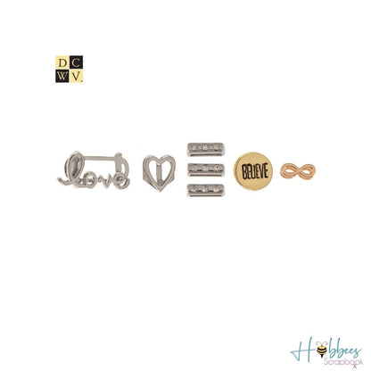Este juego de charms o adornos metálicos está diseñado para que los insertes en la tira decorativa que traen algunos de los planners de la línea Moment maker y de esta forma personalices la portada y le des un toque muy especial.
