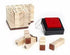 El paquete contiene 30 sellos y un cojín de tinta color rojo.
