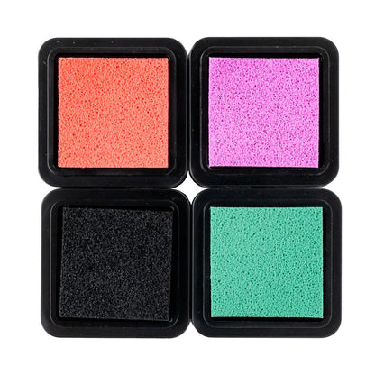 Este paquete de cuatro almohadillas de tinta es parte de la colección April and Ivy de American Crafts. Este paquete incluye los colores rosa oscuro, morado, negro y verde. Estos estuches de tinta miden 1,18" x 1,18" y las almohadillas de tinta de espuma miden 1" x 1". Esta tinta no es tóxica y no contiene ácidos. Estas almohadillas de tinta se pueden utilizar en tarjetas, páginas de álbumes de recortes, etiquetas, diarios, agendas y otros proyectos de manualidades en papel.