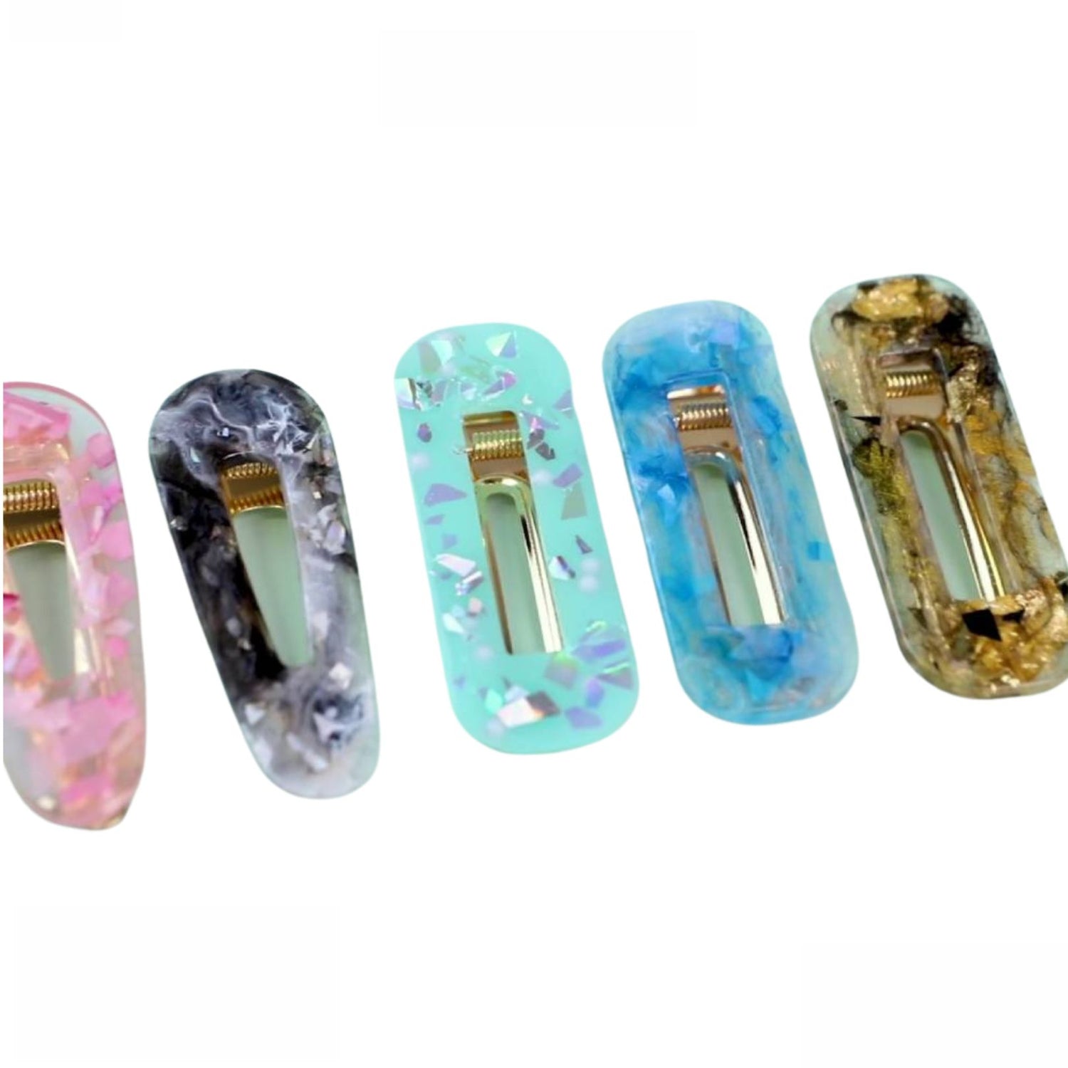 Personaliza tus propias pinzas para el cabello con estos moldes que forman parte de la colección de resina Color Pour de American Crafts.