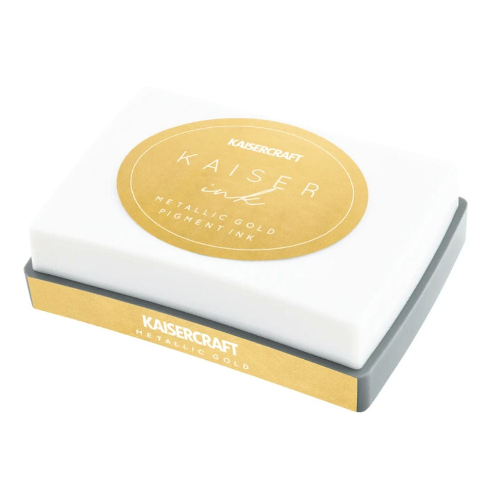 - 1 Metallic Gold Pigment Ink Pad que mide 7 cm x 5 cm x 2 cm aprox.