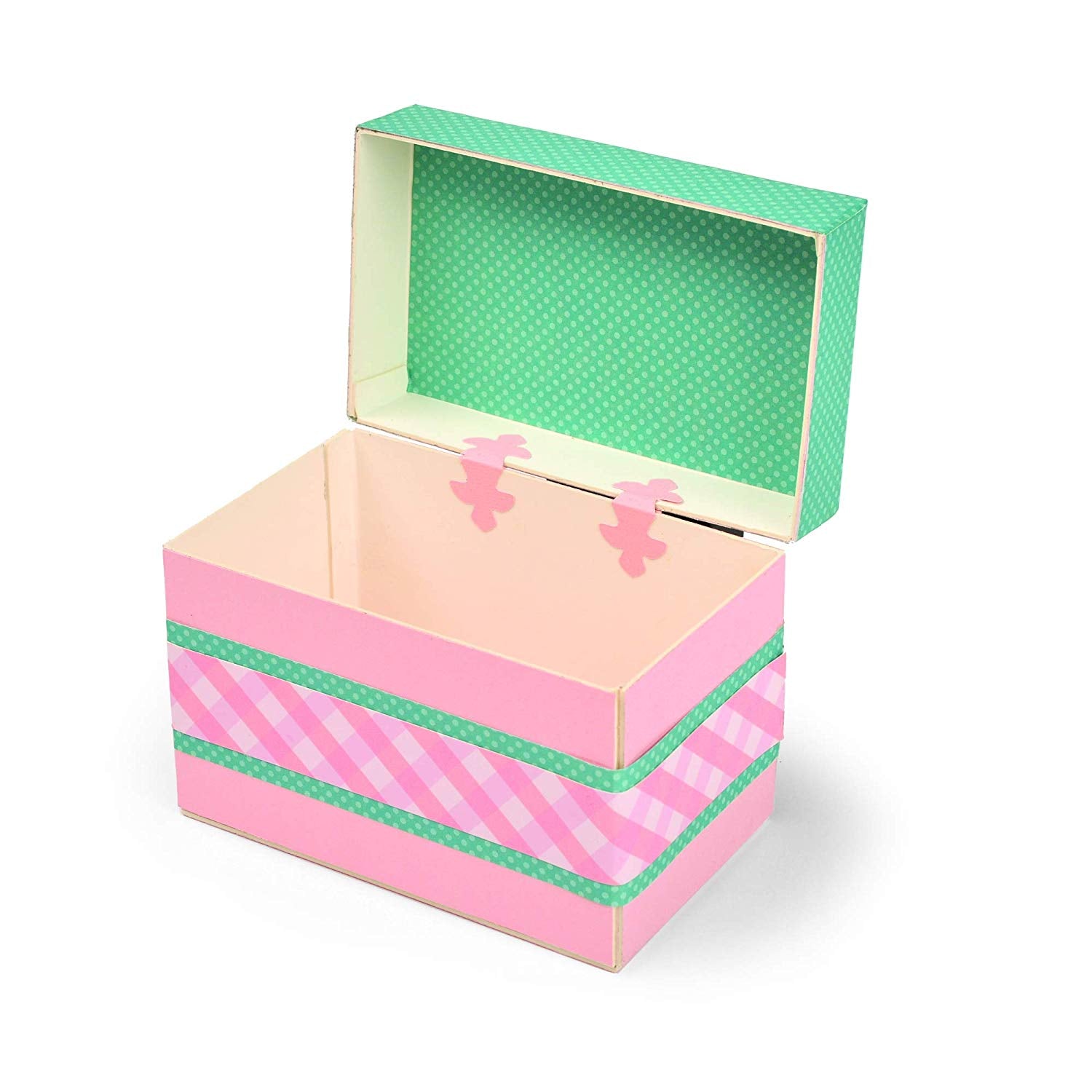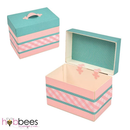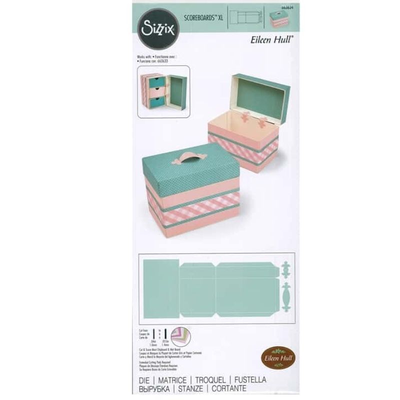 - 1 Suaje para cortar y armar una cajita tipo cofre. La Cajita armada mide: 13.3cm x 10.5cm x 8.3cm