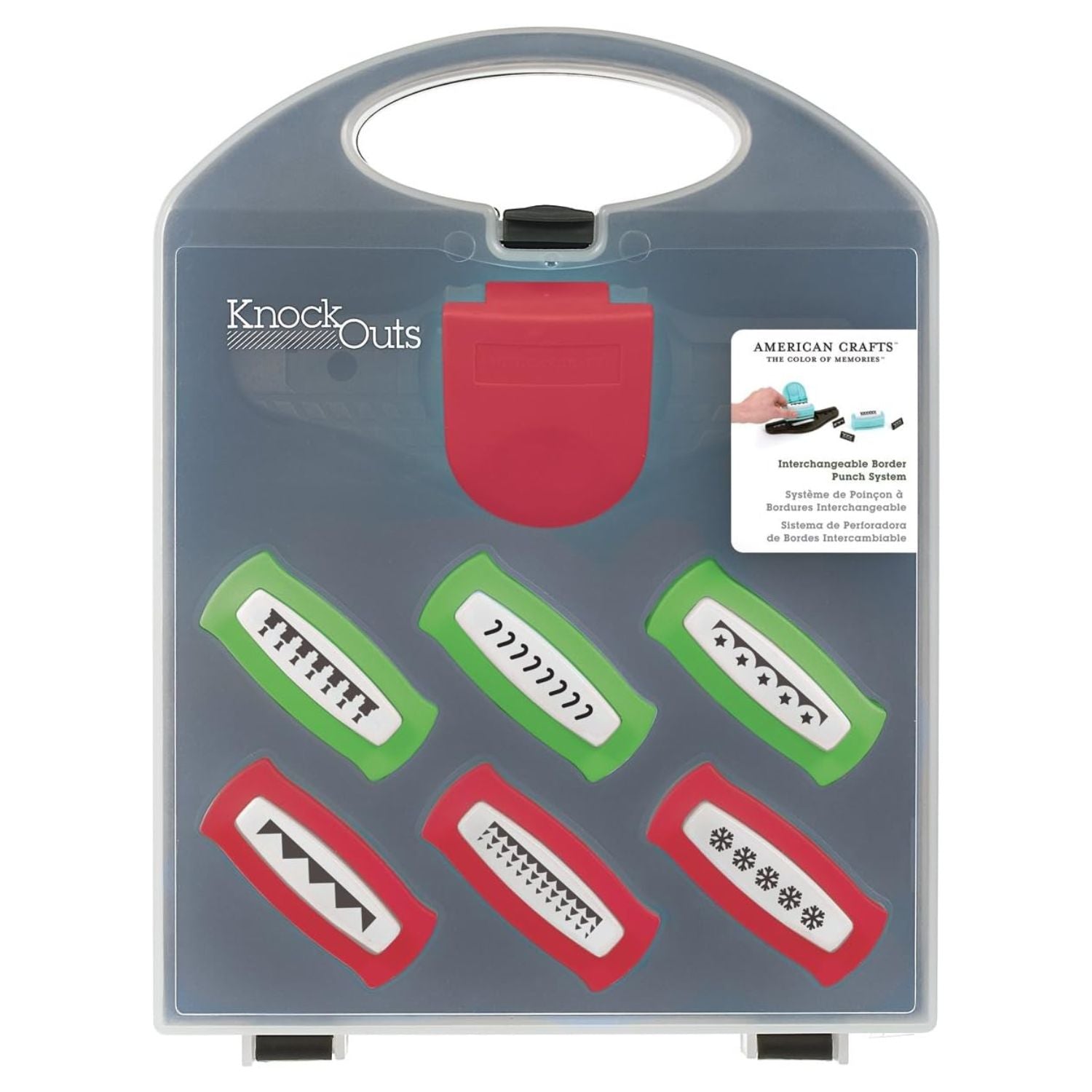 Consigue los bordes originales y creativos con la perforadora de KnockOuts, en la que podrás hacer proyectos impactantes intercambiando los diferentes modelos de bordes.