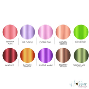 Colores y estilos incluidos en el paquete: Rosa Begonia, Púrpura Iris, Rosa Púrpura, Cobre Otoñal, Verde Lima, Rojo Vino, Naranja Cayena, Púrpura Mágico, Marrón Militar, Oliva Camuflaje.