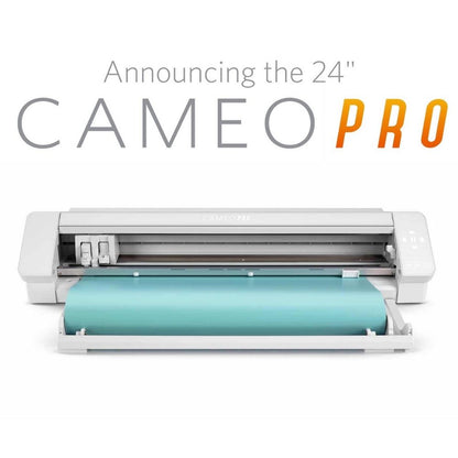 Silhouette Cameo®4 Pro es la máquina más grande de la serie Cameo. Es una máquina de corte de precisión que puede cortar vinilo, transferencia de calor, cartulina, tela, y más. Con una anchura de corte de hasta 24 pulgadas de ancho, esta máquina abre muchas posibilidades de corte.