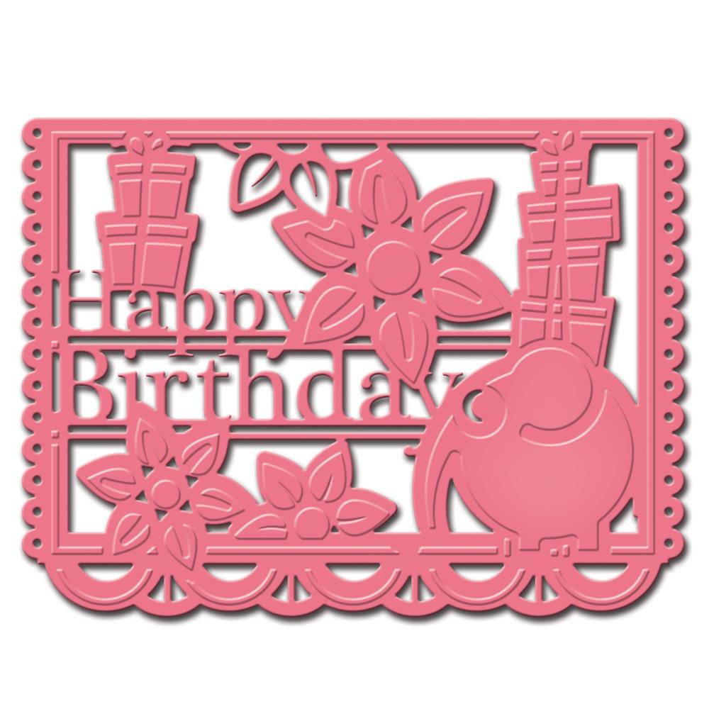 - 1 suajes para cortar papel picado de Happy Birthday Ancho:12.7 cm Altura: 19.69 cm