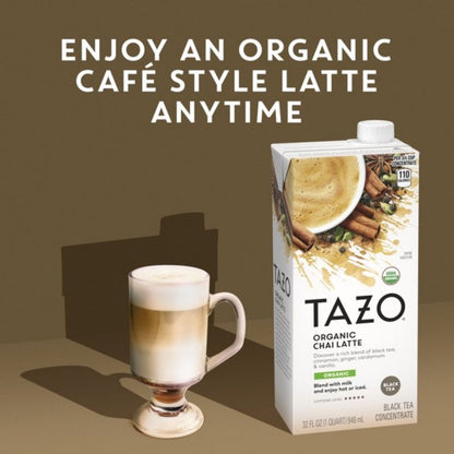 El concentrado de Tazo Organic Chai Latte es una mezcla de té negro, canela, cardamomo, pimienta negra y especias. Hecho con té puro, el té chai con especias tiene un sabor deliciosamente vibrante. Tazo chai latte es un concentrado líquido, así que para un sabor rico, agrega tu leche favorita.
