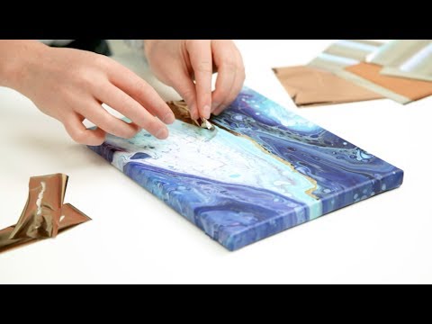 Diferentes láminas de aluminio y pegamento para aplicar elementos metálicos al vertido artístico.