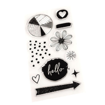 Con este set de sellos podrás estampar tus proyectos mas de una vez: Agrégale un toque precioso con corazones, flores, puntos, línea, flechas y estrellas.