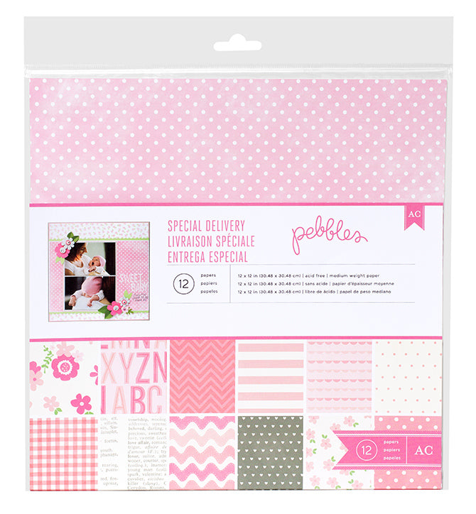 Baby Girl Kit Pebbles 12" x 12" Paper / Papel Doble Cara Niña