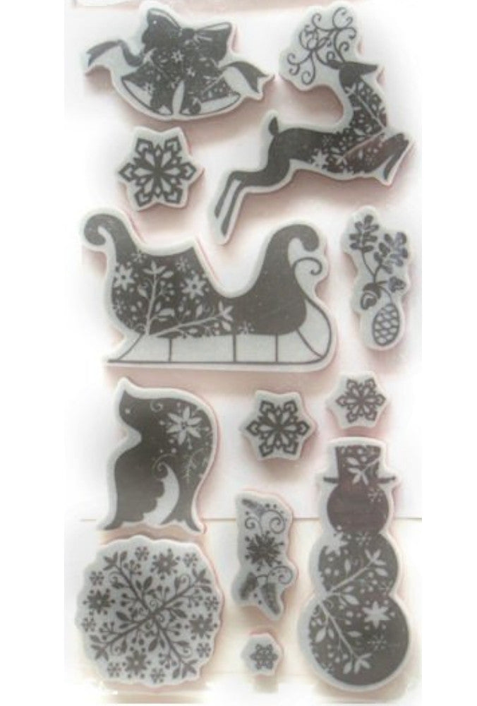 Planilla de Sellos de Goma Cling, la planilla entera mide 20.5 x 10.5 cm