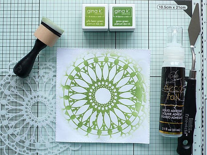 Plantillas diseñadas para utilizar con tintas, pintura, gesso, pasta de modelar, así como otros medios. Son flexibles, por lo que puedes colocarlas en casi cualquier superficie.