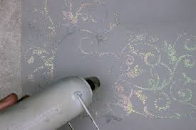 Con una tinta de secado lento, humedece y estampa tu sello favorito, después cubre con tus polvos de embossing, no escatimes, permite que se cubra todo muy bien. Estos se pegarán únicamente a la tinta, después sacude todo el restante sobre una charola Tray Mate. Y ahora con una pistola de aire caliente (heat gun o heat tool), funde los polvos y listo, obtienes un acabado realzado, muy parecido a la serigrafía.