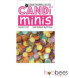 El paquete mini contiene 4 gramos de candis que miden 1 cm de diámetro. 160 piezas apróximadamente.