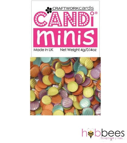 Los candi son circulitos de papel tipo brads pero sin patitas, vienen de diferentes colores y diseños, los puedes usar para decoraciones del hogar, invitaciones, tarjetas, proyectos escolares, etc. Hechos en el Reino Unido.