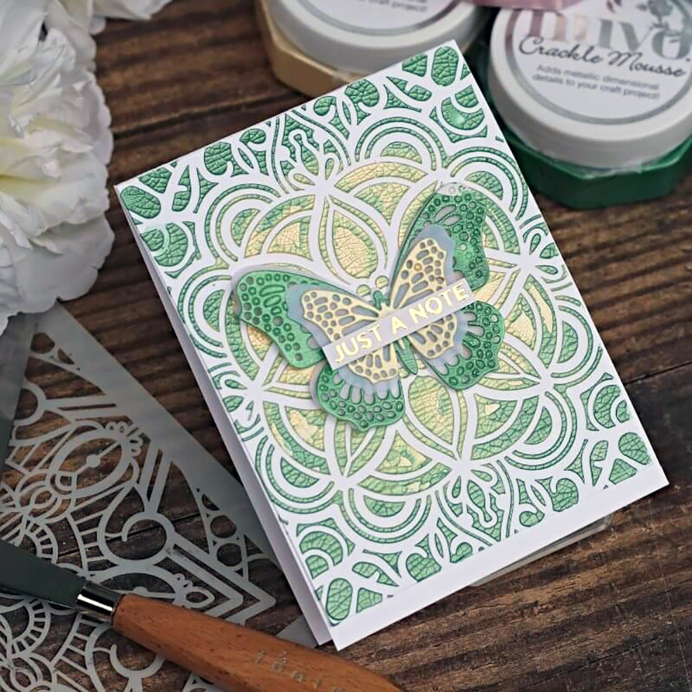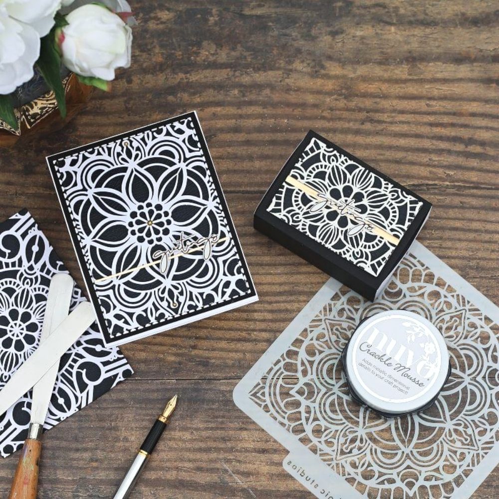 Este versátil mousse es perfecto para adornar tus diseños o usar como pasta texturizadora, para efecto craquelado, Ideal para utilizarse con esténciles o plantillas.