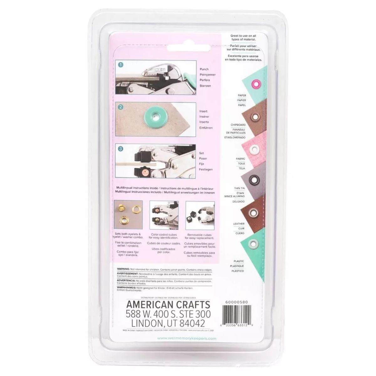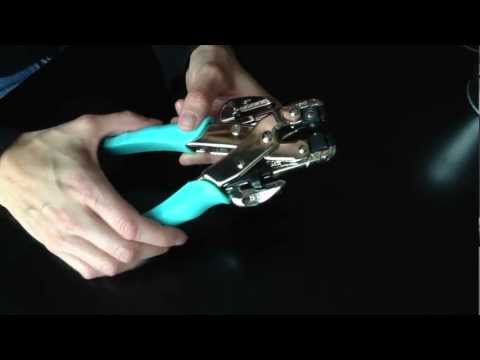 La Crop-A-Dile reúne en una herramienta con dos funciones, hace agujeros de dos tamaños diferentes y pone ojillos (eyelets) de forma fácil y rápida, también conocida como remachadora. Tiene cubos removibles y sistema de bloqueo.