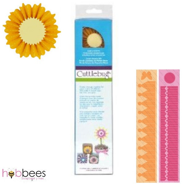 Cuttlebug: Kit de Sample Rosette Crea hermosas flores para manualidades en papel. Fácil de usar. Cortas, Doblas y listo! Este kit contiene dos suajes de corte y una flor de muestra. Requiere Placa de Acrílico 13x6 pulgadas A, B y C (no incluido).
