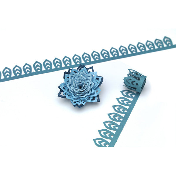 Perforadora para 2 usos, crea hermosas flores enrollando la tira recortada o simplemente utilizando la tira para decorar tarjetas. Su ventaja es que puedes continuar el diseño al largo que quieras.