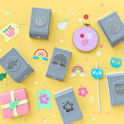 ¡EK Tools sabe cómo dar un gran golpe! Esta perforadora es perfecta para agregar un poco de dimensión y color a tus proyectos en pocos pasos. Usa tus papeles estampados favoritos para perforar formas adorables y colocarlas en capas para un adorno fácil. Ideales para decorar tarjetas, álbumes de recortes y más.