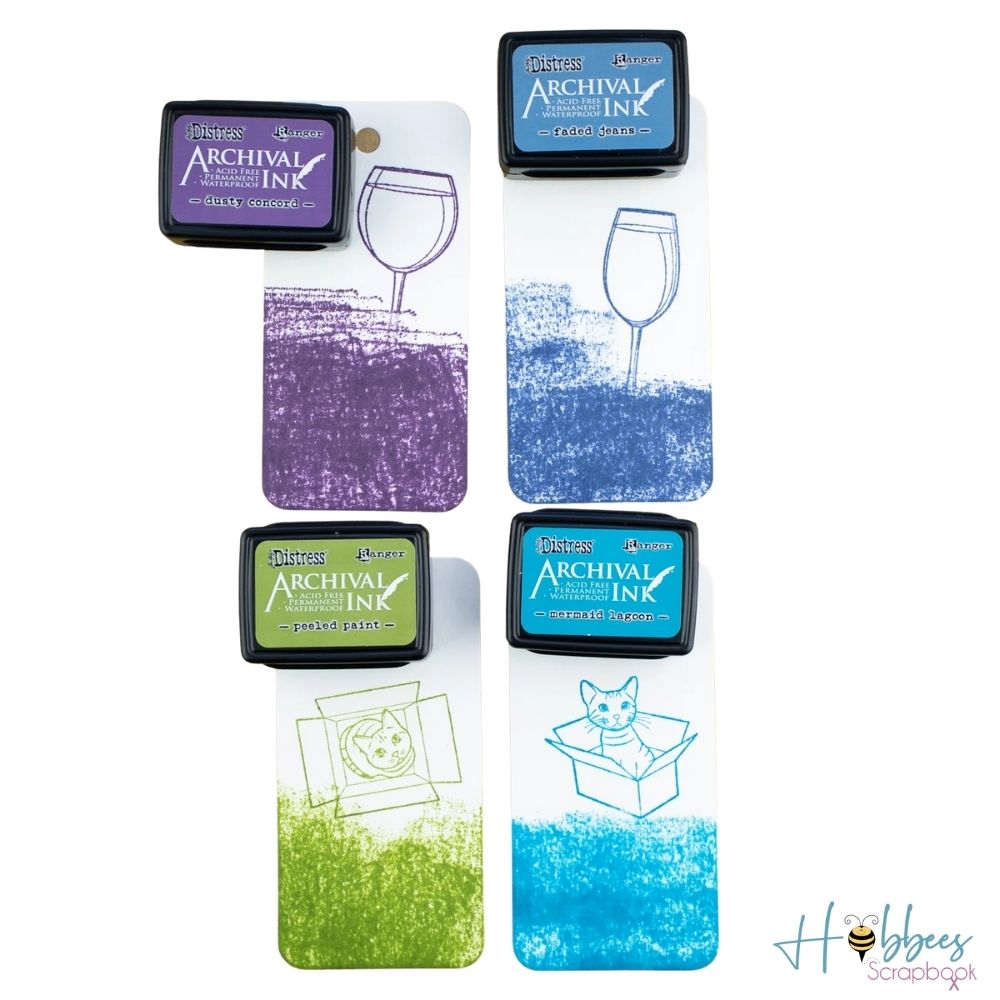 Las tintas Archival son permanentes en muchas superficies y brindan resultados de estampado detallados y duraderos que no se corren cuando se usan con tintas a base de agua, marcadores, pintura acrílica y acuarelas. Las almohadillas de tinta se pueden volver a entintar fácilmente con el Re-entintador de tinta Tim Holtz Distress Archival Ink Re-inker a juego.
