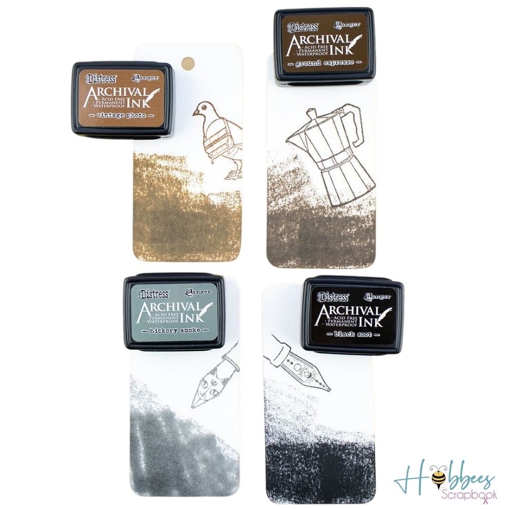 Las tintas Archival son permanentes en muchas superficies y brindan resultados de estampado detallados y duraderos que no se corren cuando se usan con tintas a base de agua, marcadores, pintura acrílica y acuarelas. Las almohadillas de tinta se pueden volver a entintar fácilmente con el Re-entintador de tinta Tim Holtz Distress Archival Ink Re-inker a juego.