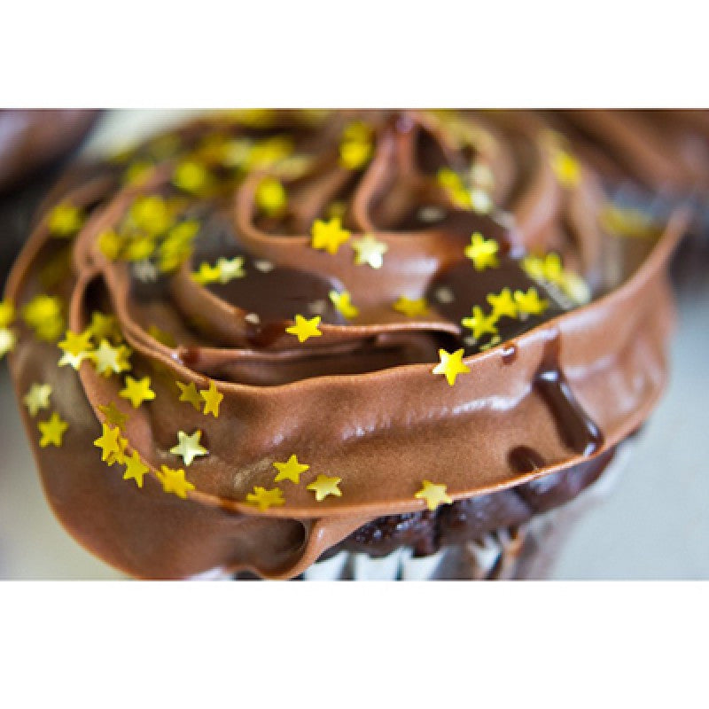 Se trata de Confeti en forma de estrellas color dorado, que dará un toque especial a Pasteles, Galletas, Donas y a casi cualquier proyecto de Pastelería.