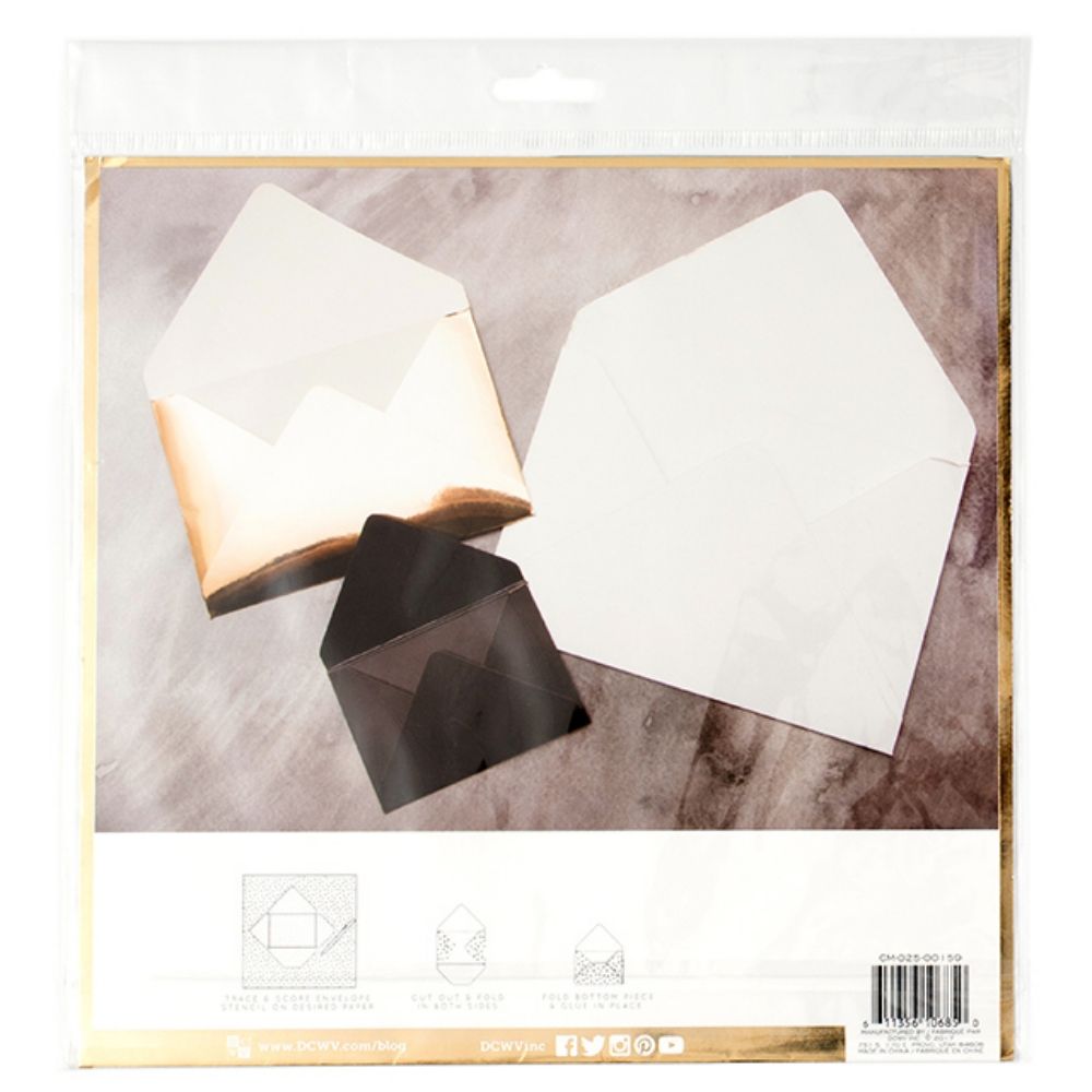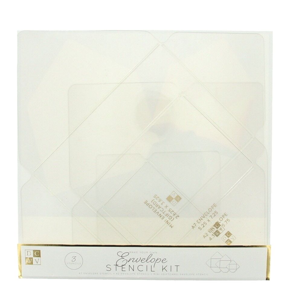 ¡El kit de plantillas de sobres de la marca DCWV es ideal para ayudarte a hacer sobres de manera fácil y rápida! Hechos de un plástico ligero que hace que sea más fácil de usar, almacenar y transportar a donde quiera que vayas. Crea sobres personalizados en cualquier momento y en cualquier lugar. No es necesario medir.