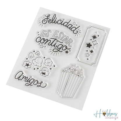 - 1 Sello Palomitas de maíz que mide 3.9 x 2.8 cm.