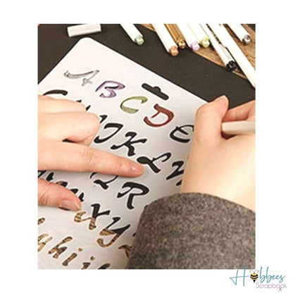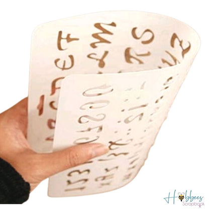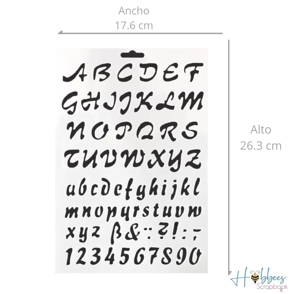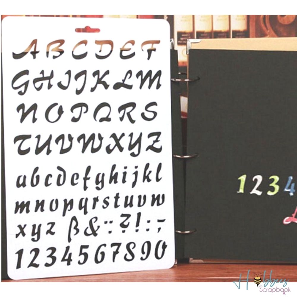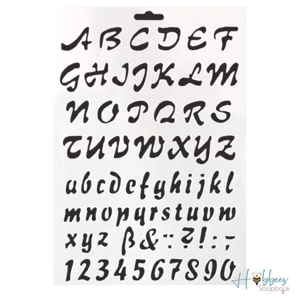 Un esténcil de alfabeto estilo Bluelans, incluye letras mayúsculas, minúsculas y números. Es ideal para hacer carteles y proyectos de arte.