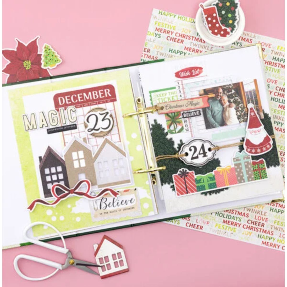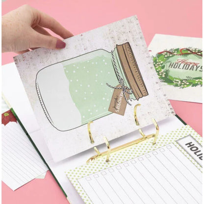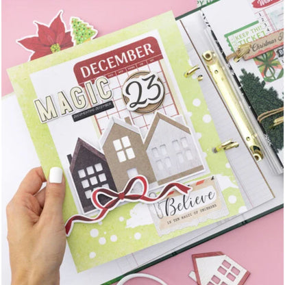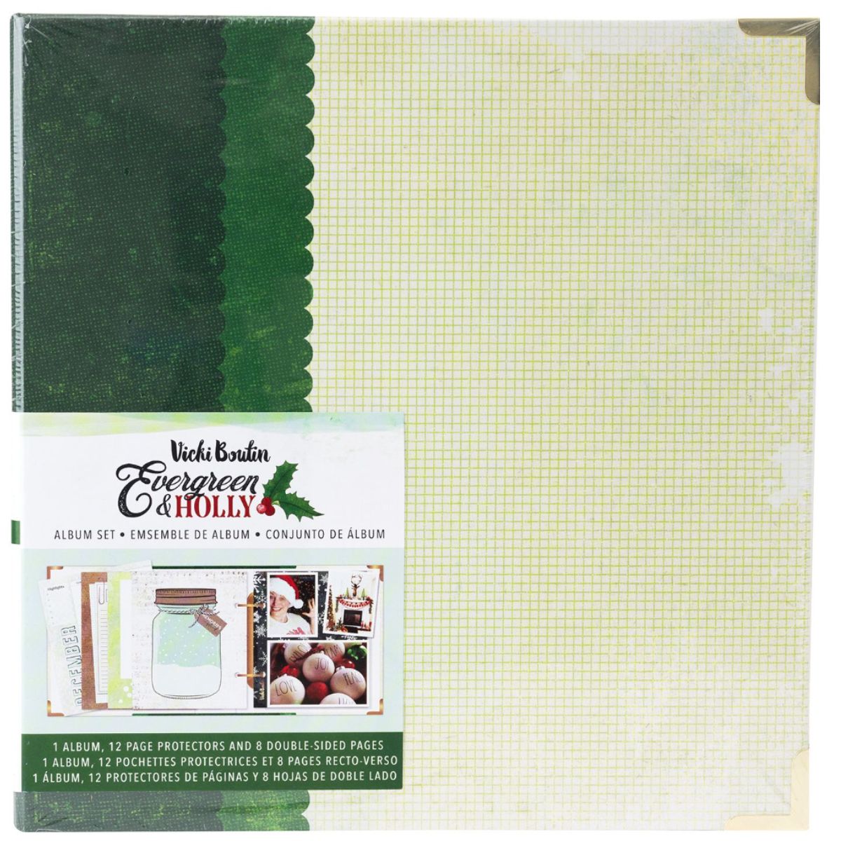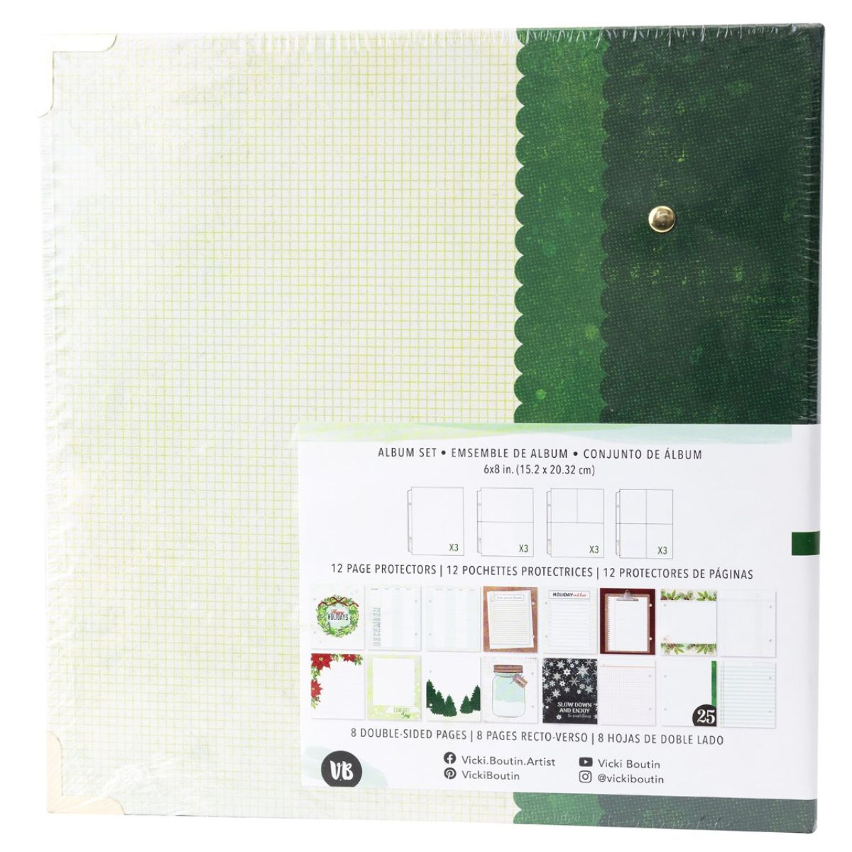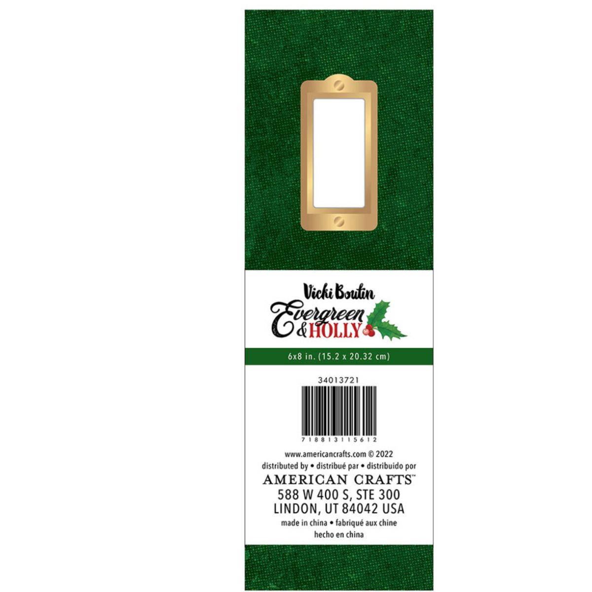 Este juego de álbum de 21 piezas de 6" x 8" forma parte de la colección Evergreen and Holly diseñada por Vicki Boutin para American Crafts. Estos papeles incluyen libros de contabilidad, páginas de diario, un frasco de vidrio. Fabricado en EE. UU.