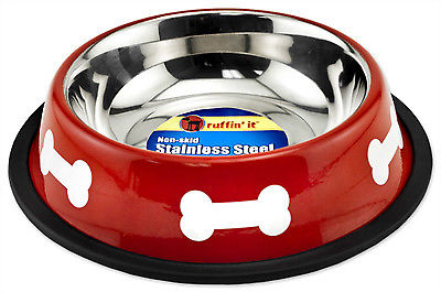 Tazón de moda de acero inoxidable rojo con huesos blancos, antideslizante.