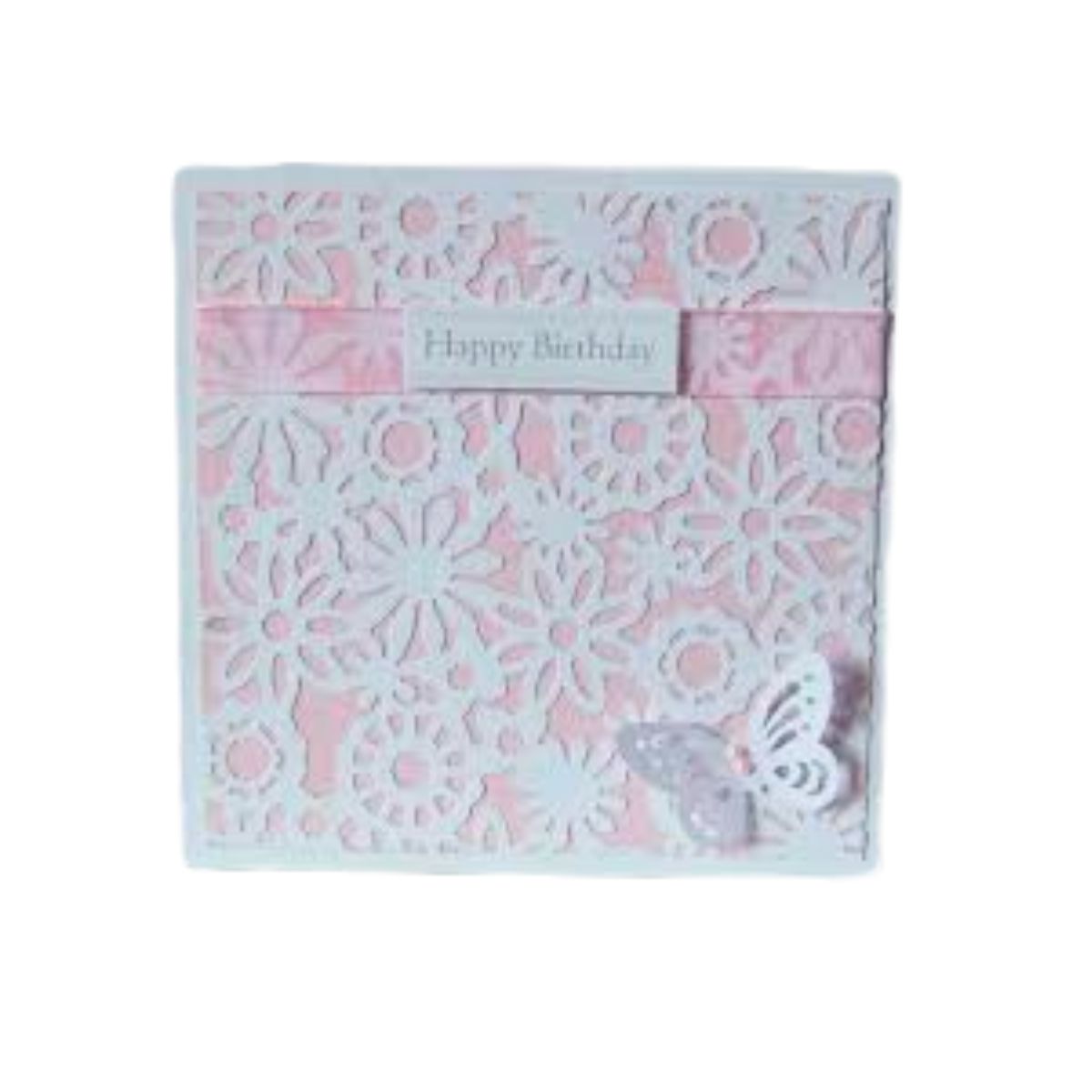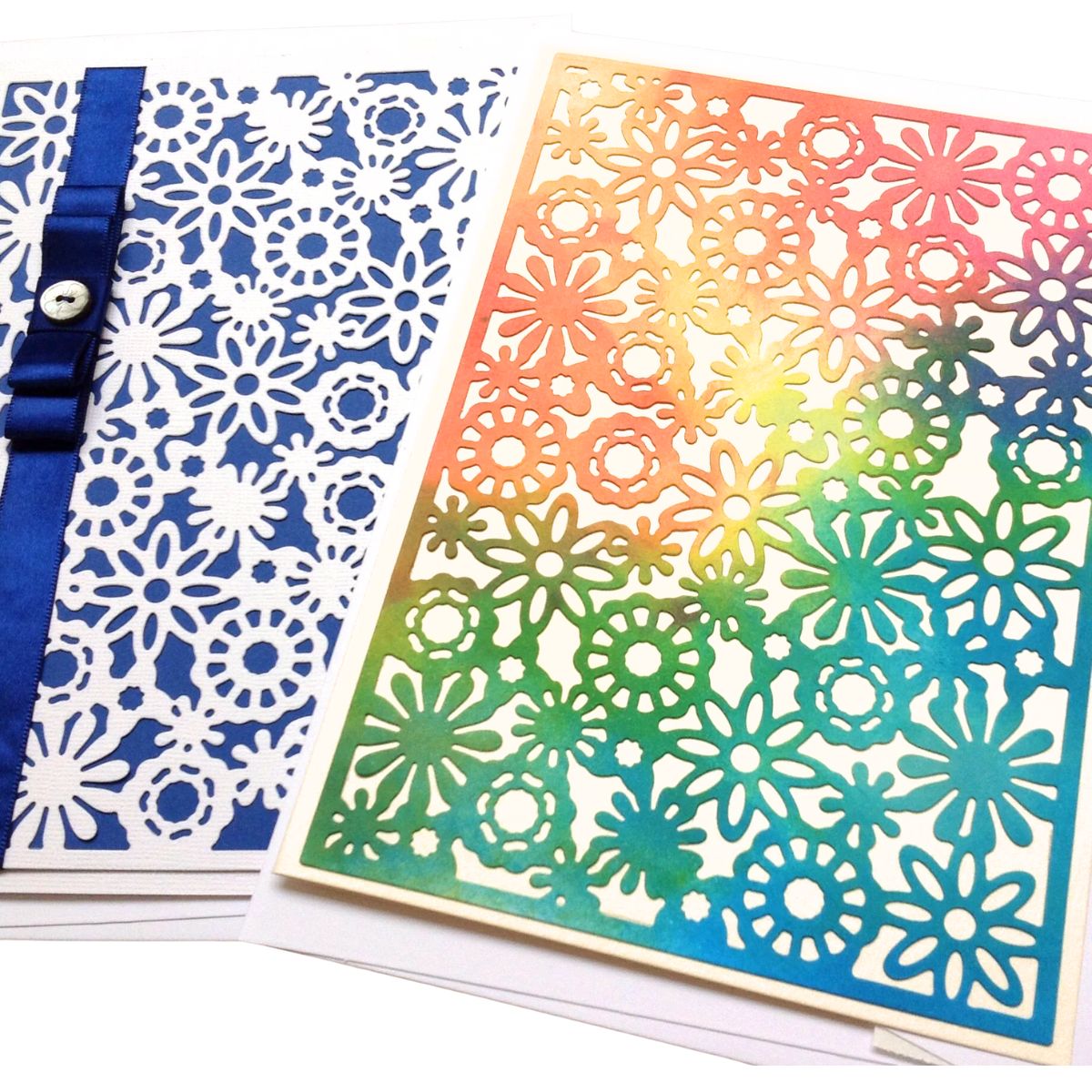 Cree una tarjeta deslumbrante cuando utilice el Fondo de filigrana floral. Para utilizarse con Xcut Xpress Machine, Big Shot Plus, Big Shot Pro, Gemini, etc.