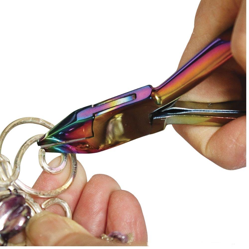 El estilo y la función se combinan en esta herramienta de la serie Chroma de The BeadSmith. Estos alicates están hechos de acero inoxidable endurecido con un recubrimiento de titanio arcoíris para una apariencia única y espectacular.