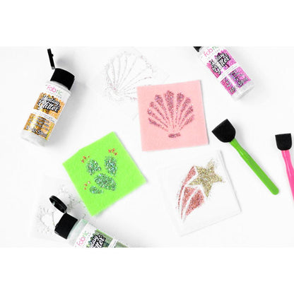 Esta pintura con diamantina añadirá detalles brillantes y deslumbrantes a todas tus prendas favoritas. La increíble pintura multifacética con glitter brilla intensamente en tejidos claros y oscuros y se seca a un tacto suave sin descarapelarse.