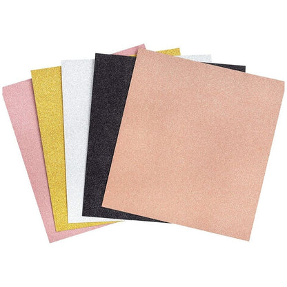 ¡Dale un toque de brillo a tus proyectos con este paquete de cartulinas glitter! Ideales para decorar tarjetas, álbumes de fotografías, journals, etc. Elige entre 6 colores: oro rosa, rosa, oro, iridiscente, plata y negro para crear tus diseños personalizados.
