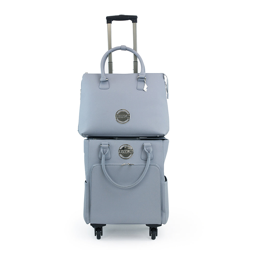 ¡Diseña sobre la marcha con el elegante conjunto de bolsa y maleta con ruedas de Nuvo!
