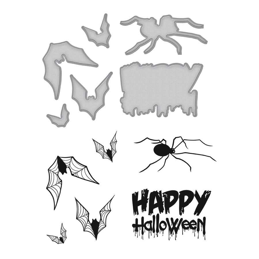 Happy Halloween Dies & Stamps Set / Suajes de Corte y Sellos de Halloween