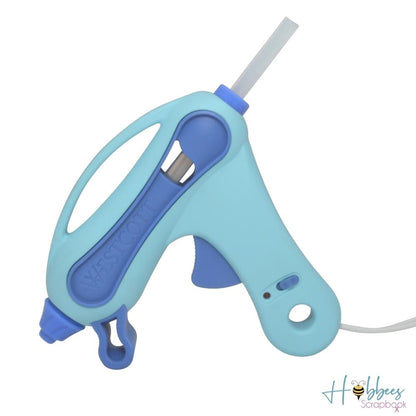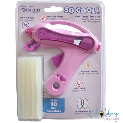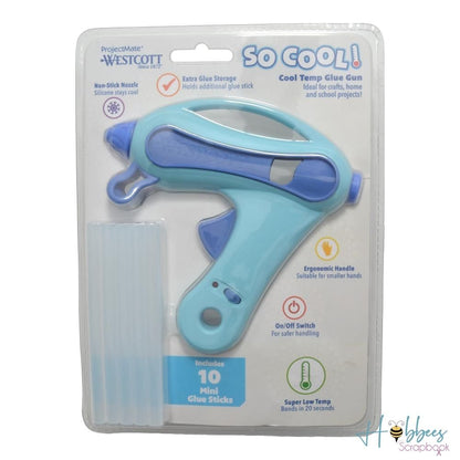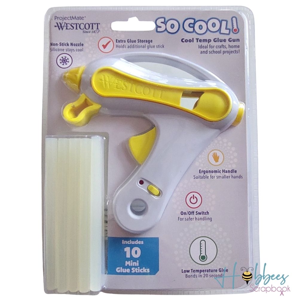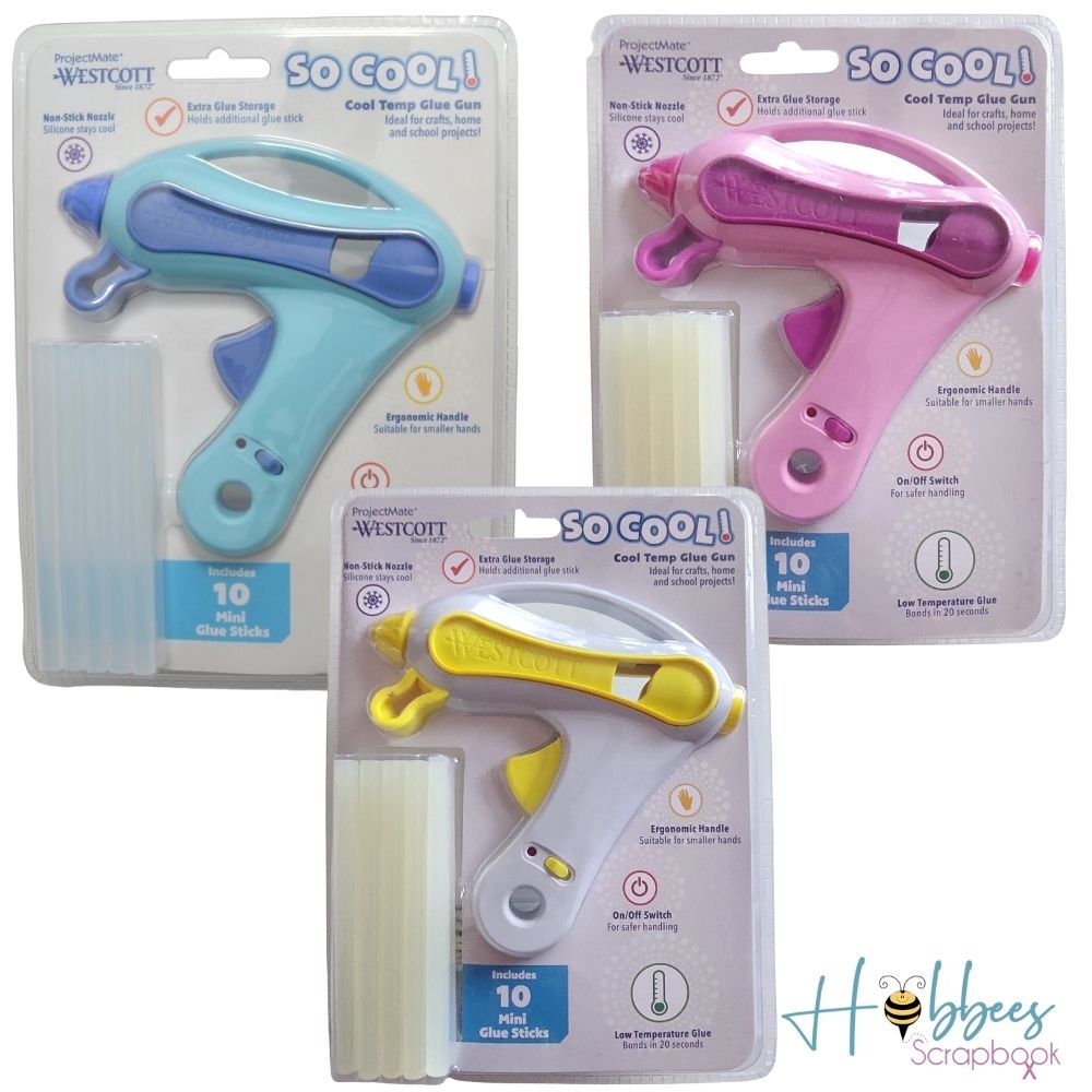 La pistola de pegamento Westcott 'So Cool' es 75 grados F (24 grados C) más fría que las pistolas de pegamento típicas de baja temperatura.