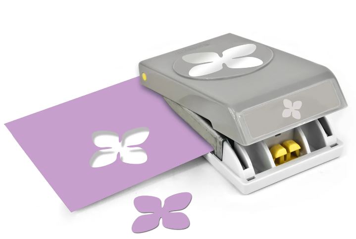 Perforadora para cortar papel y cartulina . Con esta herramienta obtienes figuras perfectas con tan solo bajar la manivela.
