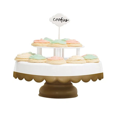 Combina niveles, charolas y accesorios para crear un bonito exhibidor para tus cupcakes, galletas y más. Puedes utilizar la base plana para pasteles o levantar 1 ó 2 pisos para colocar los cupcakes y exhibirlos de manera linda. Son muchas las opciones que tienes con esta versátil base exhibidora decorativa.
