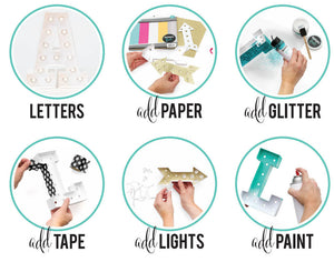 Personalizalo con papel, cinta washi, pintura, diamantina.