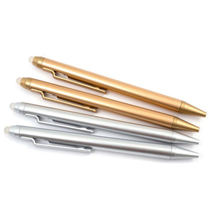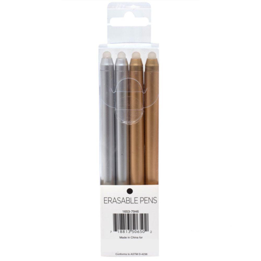 - 4 bolígrafos borrables (en su exterior 2 son color plata y 2 oro).