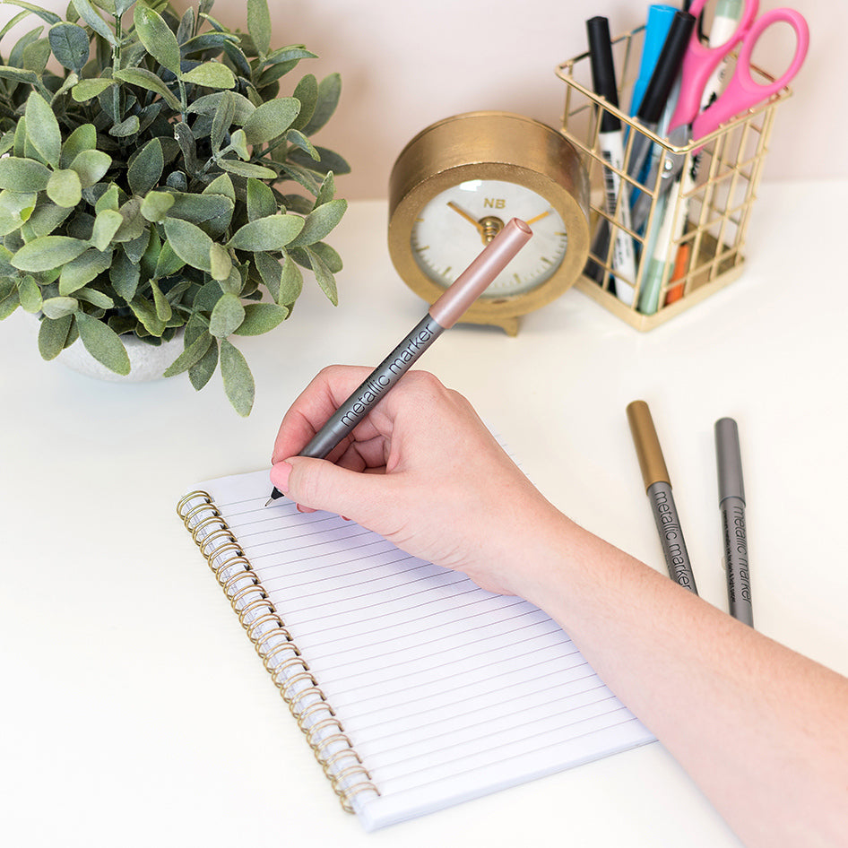 Agrega colores hermosos a tus planners, diarios, cuadernos de escritura, journal y más con estos marcadores metálicos de American Crafts.