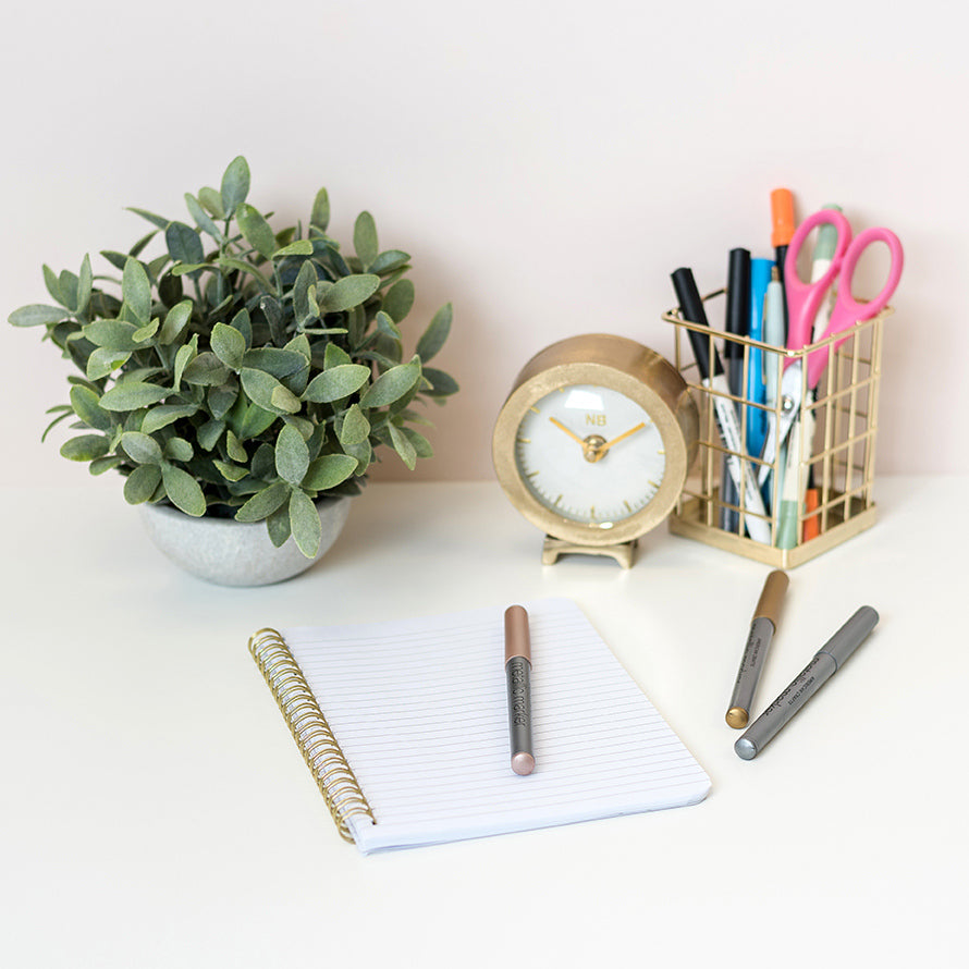 3 marcadores metálicos de punta ancha en oro rosa, oro y plata (cada marcador incluye dos puntas adicionales).