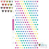 Arcoíris de micro mini corazones, en tonos metálicos fucsia, amarillo dorado, verde, azul y morado.
